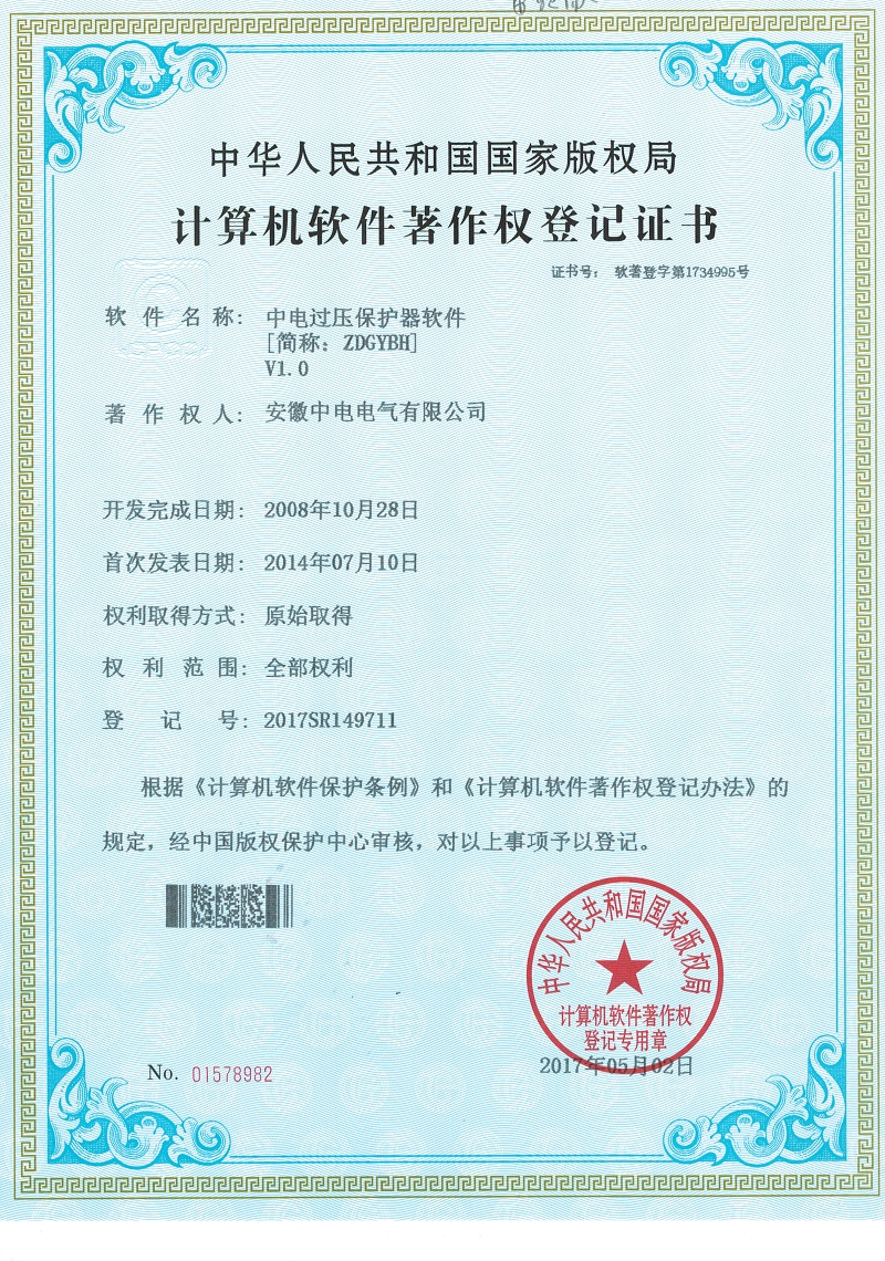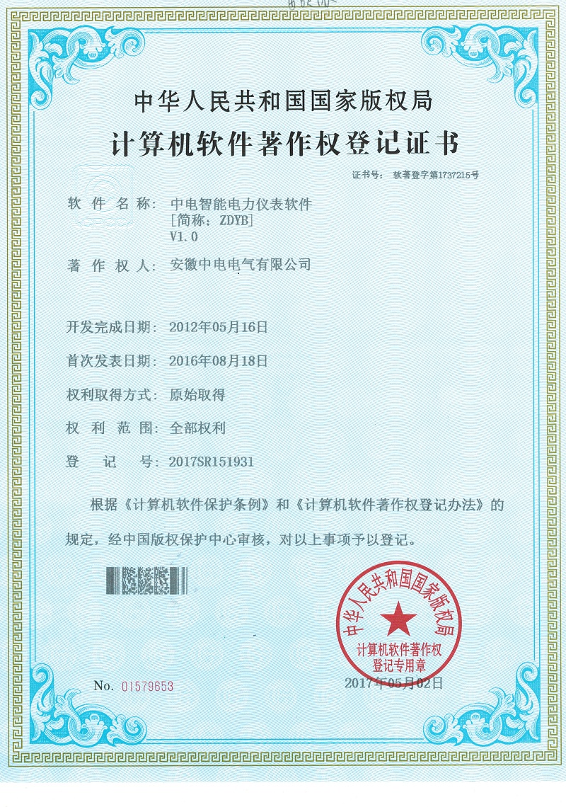 - 計算機軟件登記證書